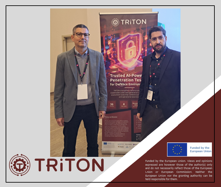 🛡️ At the TRITON booth, 𝗧𝗥𝗜𝗧𝗢𝗡 𝗿𝗲𝗽𝗿𝗲𝘀𝗲𝗻𝘁𝗮𝘁𝗶𝘃𝗲𝘀 𝘀𝗵𝗮𝗿𝗲𝗱 𝗶𝗻𝘀𝗶𝗴𝗵𝘁𝘀 𝗮𝗻𝗱 𝗵𝗮𝗻𝗱𝘀-𝗼𝗻 𝗲𝘅𝗽𝗲𝗿𝘁𝗶𝘀𝗲, 𝗵𝗶𝗴𝗵𝗹𝗶𝗴𝗵𝘁𝗶𝗻𝗴 𝘁𝗵𝗲 𝗽𝗿𝗼𝗷𝗲𝗰𝘁’𝘀 𝘁𝗲𝗰𝗵𝗻𝗶𝗰𝗮𝗹 𝗮𝗰𝗵𝗶𝗲𝘃𝗲𝗺𝗲𝗻𝘁𝘀 𝗮𝗻𝗱 𝗰𝗼𝗹𝗹𝗮𝗯𝗼𝗿𝗮𝘁𝗶𝘃𝗲 𝘀𝗽𝗶𝗿𝗶𝘁. The audience included Cybersecurity professionals, EU project stakeholders, startups and industry experts.