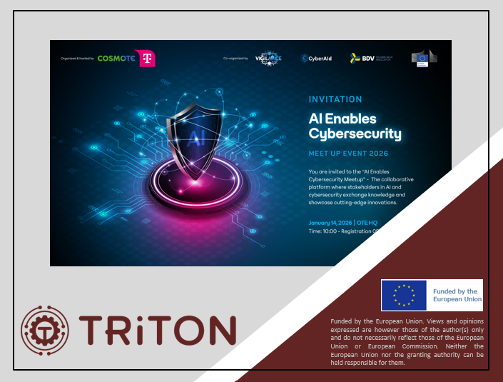 Our Partner INTRACOM DEFENSE and EXUS represented the TRITON EDF Project at “𝗔𝗜 𝗘𝗻𝗮𝗯𝗹𝗲𝘀 𝗖𝘆𝗯𝗲𝗿𝘀𝗲𝗰𝘂𝗿𝗶𝘁𝘆: 𝗧𝗵𝗲 𝗠𝗲𝗲𝘁𝘂𝗽”, held on January 14th, 2026. The event was organized and hosted by COSMOTE TELEKOM, in collaboration with the BDVA – Big Data Value Association and the Vigilance and CyberAid projects.